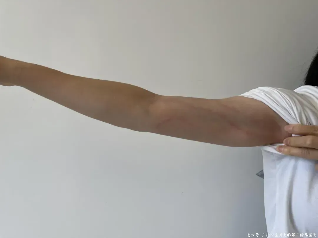 经诊断,她患上了 “急性淋巴管炎” ,民间常说的 “红线疔” 。这条“红线”,正是细菌沿淋巴管向上蔓延发出的紧急警报。万幸,经过规范的抗感染治疗,该名患者最终痊愈。